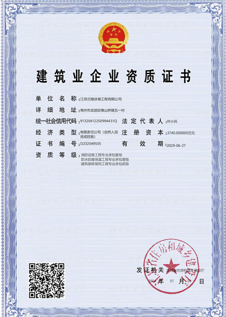 江蘇蘭陵涂裝工程有限公司現有員工200人,項目經理20人,工程技術人員32人,施工隊伍技術力量雄厚。企業恪守信譽,牢固樹立“安全是天,市場是地,質量是命,管理是根”的管理思想,先后承擔了北京人民大會堂第一次修繕亮光工程及寶鋼建設二、三期、全國十大鋼鐵企業、國家大劇院等大型防腐涂裝工程,南京國展、首都機場、京滬高鐵上海虹橋樞紐、武漢火車站、廣州火車站等防火涂裝工程,海口新大洲、蕪湖汽車制造廠、海南汽車制造廠等地坪涂裝工程,無錫五星家園、無錫落霞小區等外墻涂裝裝飾工程,在全國樹立了500多個“優質樣板工程”,多次受到業主及工程指揮部的嘉獎。